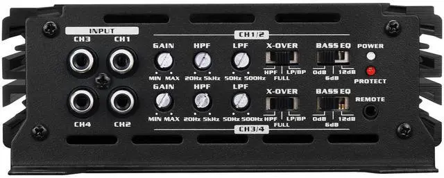 POWER]RMS Power: 150W*4CH at 4Ohms, 250W*4CH at 2Ohms and 500W*2CH at 4Ohms Mono. This 4 channel amplifier car audio full-range amplifier was designed 1000 Watt high output class A/B and 2/4 Ohm stable ^^ [MULTI-PROTECTION CIRCUIT DESIGN]Overheating protection, Short-circuil protection, Under-voltage protection Multi-way for protecting amp ^^ [HIGH QUALITY SOUNDS] Low/High level input full-range Mosfet power supply, stereo ^^ [SPECIFICATIONS]Input