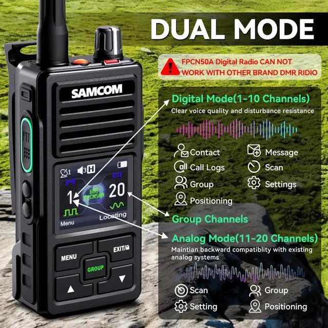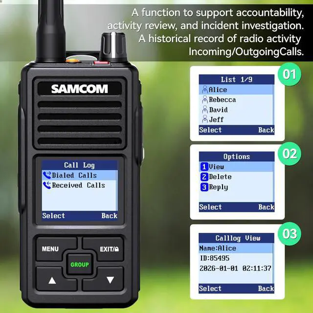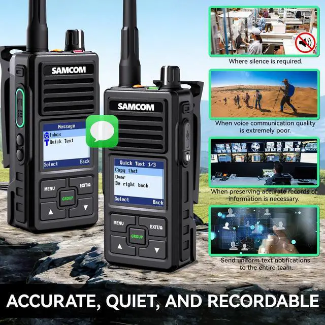 Advanced Digital Mode to avoid background static noise, operate on digital channels (Ch 1-10) for crystal-clear and stable communication. Utilise flexible Contact modes (Individual, All Call, Emergency Contact), for instant, organised calling. Analog Mode (Ch 11-10) for easy to wide compatibility with other brands of walkie talkies. CAN NOT WORK WITH OTHER DIGITAL RADIOS ^^ Digital Call Logs for Record-Keeping automatically record all history with time and the recipient. Providing a reliable audit trail for both personal and professional team management. ^^ Message enables sending and receiving custom text messages on digital channels, allowing SMS-like communication where voice calls aren't ideal.