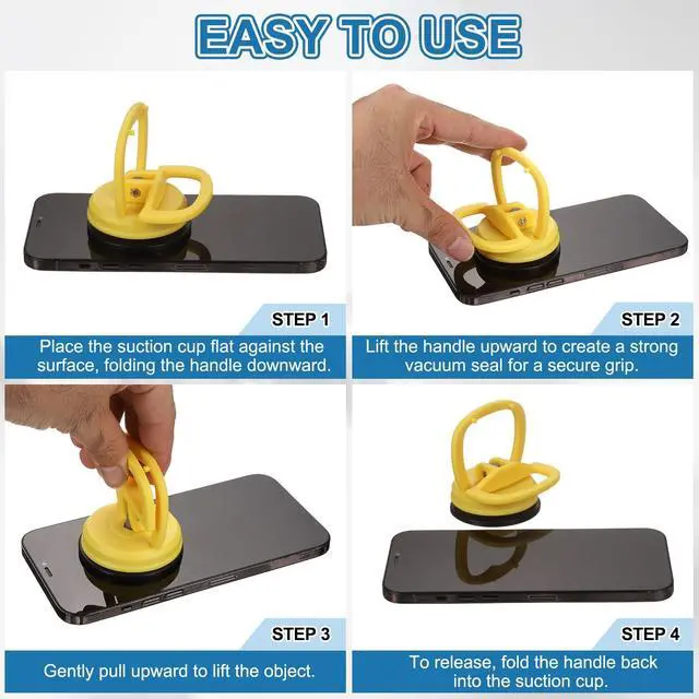 Design: These LCD screen opening tools are crafted from durable ABS and natural rubber composite materials for extended durability. The sturdy ABS handle combines with a soft rubber suction pad that securely grips screens while protecting surfaces from scratches or paint damage.