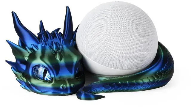 This dragon stand for Echo Dot 4th and 5th Gen, providing stable support while adding a touch of whimsy to your decor. Crafted using advanced 3D printing technology with high-quality PLA material, it showcases vibrant colors and a silky sheen. Each piece is meticulously assembled by artisans, with attention to every detail, making each dragon stand unique. Whether placed on your desk, bookshelf, or nightstand, this charming decoration will enhance the allure of your living space.