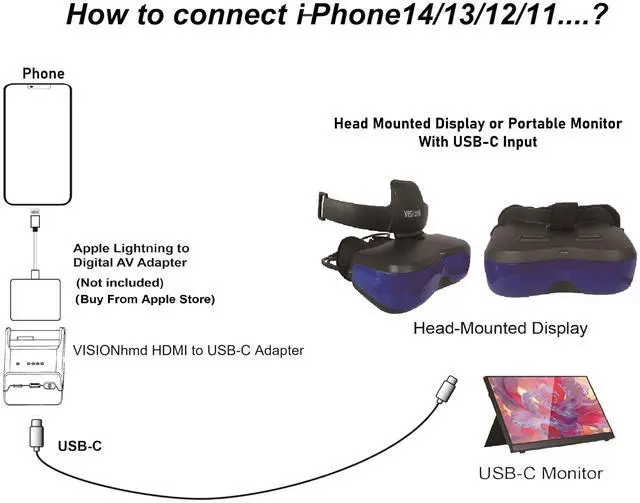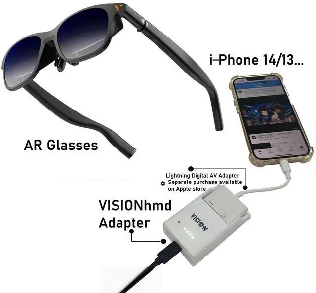 ^^ Plug and play: Connect your mobile display or AR glasses without any programs or software drivers. It has a built - in rechargeable battery with up to 3 hours of playback time, or you can charge it while playing. ^^ No need for complicated settings or software installation - simply use the HDMI to connect to a USB-C adapter and easily connect your AR glasses or mobile display. Dive into your own private virtual cinema to watch anything you want. ^^ Compact and portable, suitable for entertainment use anywhere. It can also be used as a power bank to provide emergency charging for Type-C devices. ^^ USB Type-C to Lightning charging adapter included. ^^ Please Note! ] Item cannot directly charge HDM signal source devices (such as i-Phone 14/13/12... ) through the HDMI interface. It only charges and powers the AR glasses. ^^ Please Note! ] It isn't compatible with Apple Studio Display, LG Ultrafine monitors, and not applicable for USB-C cell phone or USB-C laptop to transfer to monitor or TV. The USB-C port of this adapter only supports multimedia output. It only supports HDMI to USB-C direction switching, opposite