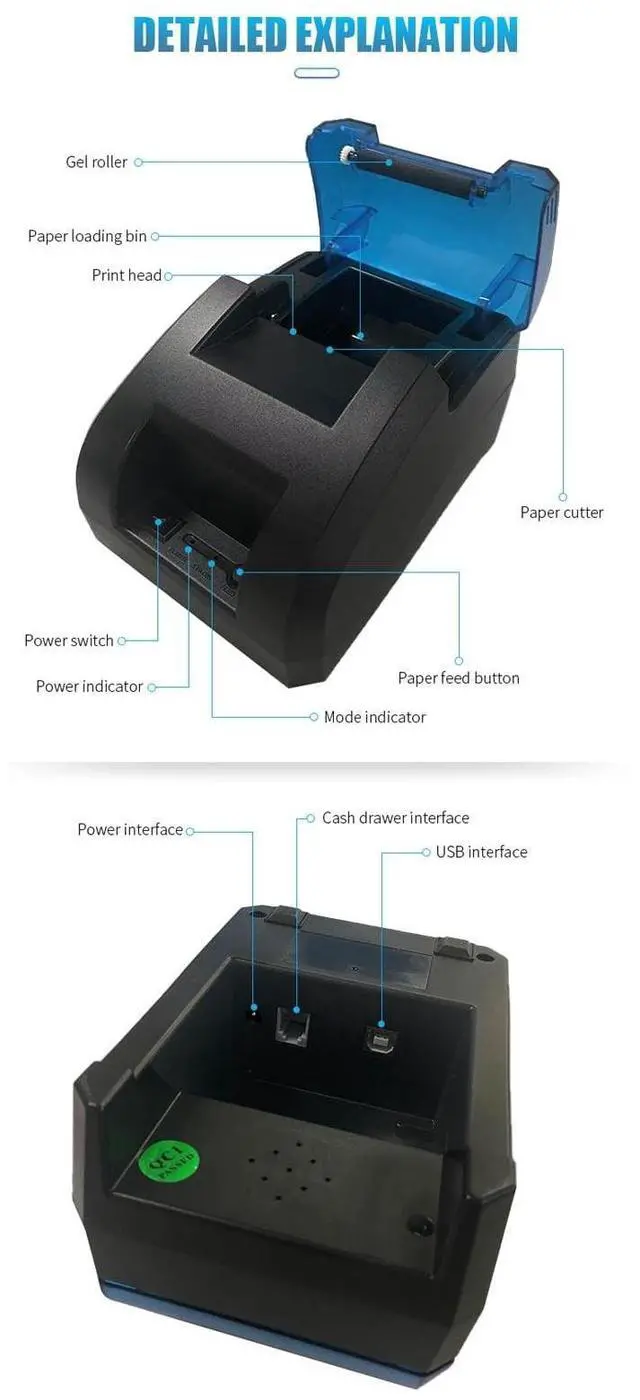 High Speed Printing: Featuring a high performance printhead, this POS receipt printer offers a remarkable printing speed of up to 70mm/s, ensuring clear and quick receipt production for efficient transactions. 3.