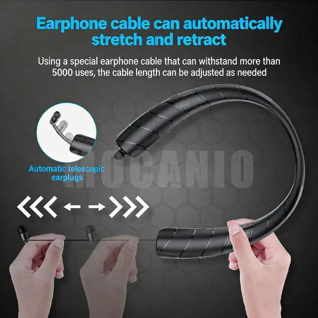 Quick charge support30 minutes charging provides 8 hours of use. ^^ Retractable & Tangle-Free DesignAdjustable retractable cable ensures perfect fit and easy storage. Lightweight neckband offers secure comfort for all-day wear.