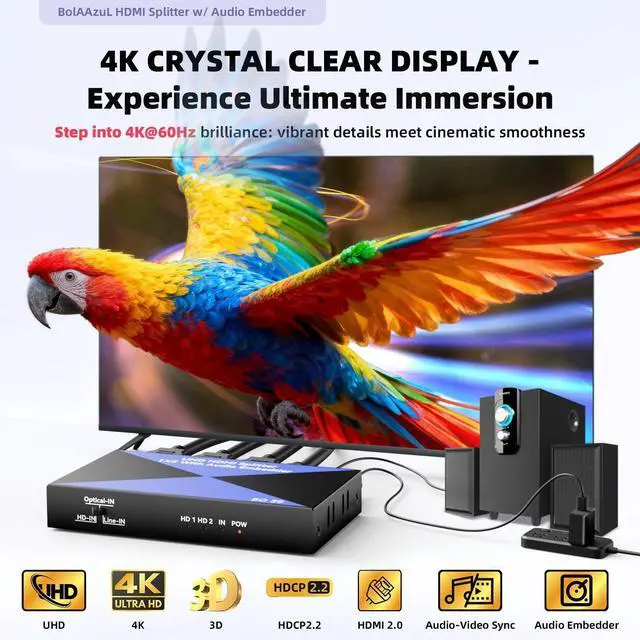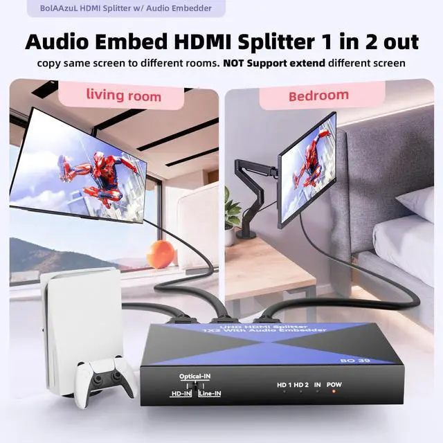 & Retail: Displays lecture slides or promotional content on multiple screens in classrooms or storefrontsWhy Choose BolAAzuL HDMI Splitter with Audio Embedder?
