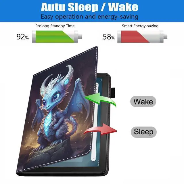 Perfectly decor your tablet, Beauty and function come together. Made of High end PU leather, features shockproof, protective smooth outer casing and sturdy exterior with soft microfiber interior keeps your tablet screen safe. Convenient multi viewing kickstand for watching movie or typing. Great for holding in landscape mode to watch videos. Designed with 3 delicate card slots inside for you to carry your necessary cards. There is a flexible pencil holder at the edge of the shell for keeping your stylus in place (Stylus is not included). Provide auto sleep/wake, Open the case to wake up and close the case to shut off, Saved power.