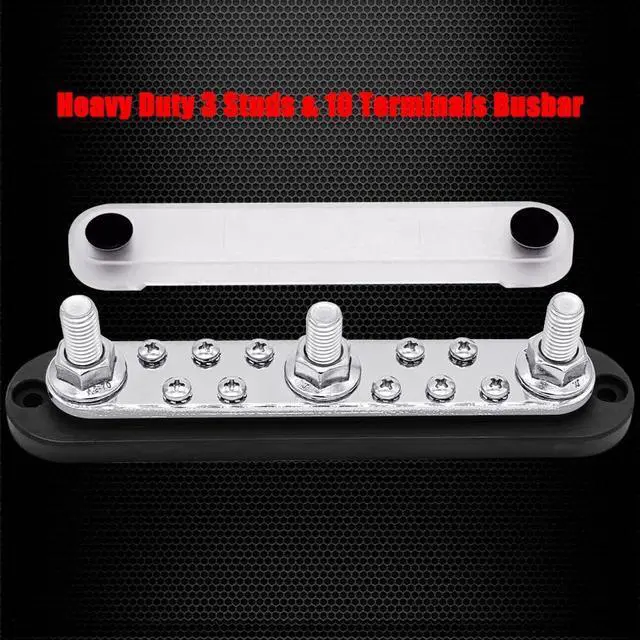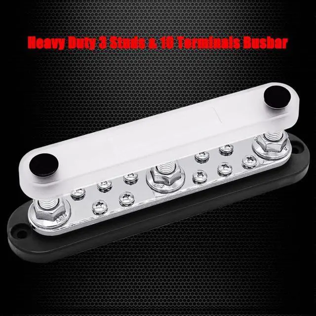 Heavy Duty: solid 3 M10 studs busbar with 10 x M4 (#8) terminal screws, nickel plated brass bus bar, route your heavy wires with minimal effort.