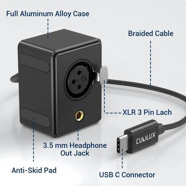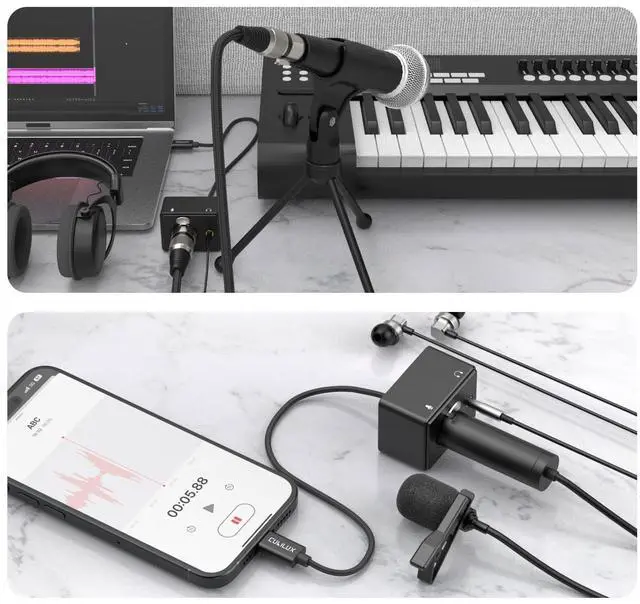 [Record with XLR Microphones on USB C Devices] Connect your XLR dynamic microphone to the Type C jack of smartphones, tablets, or laptops for easy and seamless recording. ^^ [Headphone Jack Accessibility] Comes with a standard 3.5 mm port for connecting headphones or speakers, allowing you to listen to your recordings with ease. ^^ [Driver-Free Plug & Play] Works instantly with most USB C phones, tablets, and computers without the need for drivers or external power. ^^ [For Dynamic Microphones Only] Not compatible with condenser mics or 48V phantom power. Attempting to supply phantom power may damage your USB-C port, since it is not designed to handle such high current.