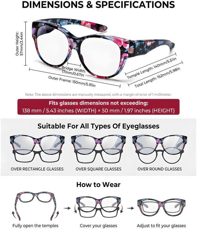 ^^ RISK-FREE PURCHASE: We stand behind the quality of our OptiCraft eyewear with a worry-free returns and exchanges commitment. Understanding that fit is crucial for wear-over glasses, we offer a dedicated 30-day trial period, allowing you to ensure the frame fits comfortably and securely over your specific prescription glasses with total peace of mind.