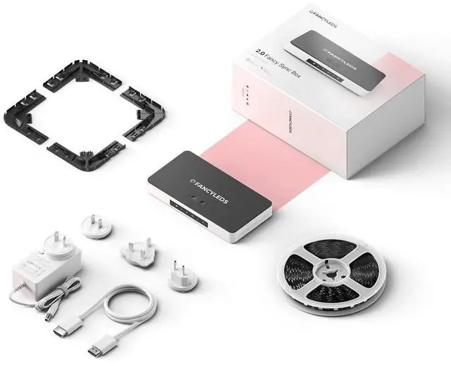 HDMI Device Required: You must connect a compatible HDMI device for syncing. Apps on your Smart TV are not synced; only apps and streaming services on your HDMI device can be. Use with a PC is NOT recommended. For a full list of compatible HDMI devices, please visit the FancyLEDs website or contact our support. ^^ Universal Power Adaptor - All items are sold with a universal power adaptor compatible with US, EU, AU, and UK power sockets. ^^ Optimized Colors - Accurate colors matching onscreen content. No camera is used; simply connect your HDMI device, allowing colors to be extracted directly from the data and synced to create an unmatched colorful cinematic experience. ^^ High Speed - No lag or delay between the Smart LED lights and TV. Delayed lighting is distracting. Lightning-fast color reaction times keep you immersed for an enhanced gaming and movie session using supercharged peripheral lighting. ^^ HDMI 2.0 b - 4K 60Hz HDR DV Enabled. Next-gen compatible, perfect for all 60Hz TV & monitors. The Fancy Sync Box is compatible with HDMI 2.1 devices & HDMI 1.4, but only operates at 2.0 b ^^ LED Strips Included - Smart LED strips are included with all sizes for a quick and simple setup.