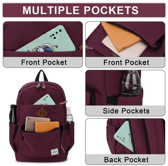 ^^ EASY TO ORGANIZE: Classic backpack features separated compartments and pockets that fits all of the stuffs you need. External access to 2 front zipper pockets, 2 side pockets for water bottle, 1 anti theft back zipper pocket for wallet, Internal access to 1 main zipper compartment includes 1 padded laptop compartment fits 15.6 inch laptop, 2 slip pockets and 3 zipper pockets keep all your things organized and easy to access.