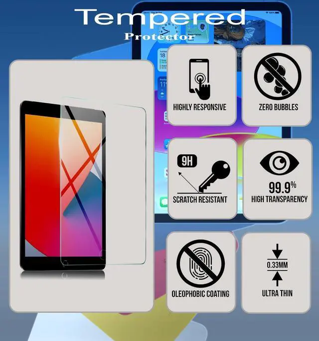^^ Tempered Scratch-Resistant 9H Glass with Oleophobic Coating Durable replacement glass features scratch resistance and a fingerprint-resistant coating, preventing damage from coins, keys, backpacks, helping keep the surface clean and responsive during everyday use. ^^ Complete iPad screen repair solution Comes with essential tools such as screwdrivers, pry tools, suction cup, and pre-cut adhesive, making it easier for DIY glass replacement. ^^ Tested Before Shipping & Secure Packaging Each digitizer is inspected for touch function and fitment before shipment and packed in reinforced packaging to reduce transit damage.