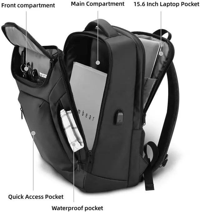 DRY WET SEPARATION WATERPROOF BACKPACK: Made from high density waterproof fabric, the work backpack for men is not only waterproof and durable, but also scratch resistant. The front wet pocket is also made from high density waterproof material and can be used to store wet items, making your stay in a hotel or apartment more comfortable. The laptop backpack has a USB charging port system that allows you to charge your electronic devices outdoors ^^