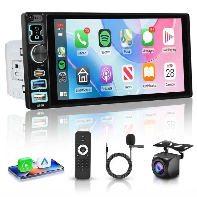 Car Stereo Single Din Touchscreen: The 6.8 -inch 1280600 IPS touchscreen delivers sharp, vibrant visuals with wide viewing angles. Whether videos, or browsing playlists, youll enjoy crystal-clear images and responsive touch control for an immersive in-car experience
