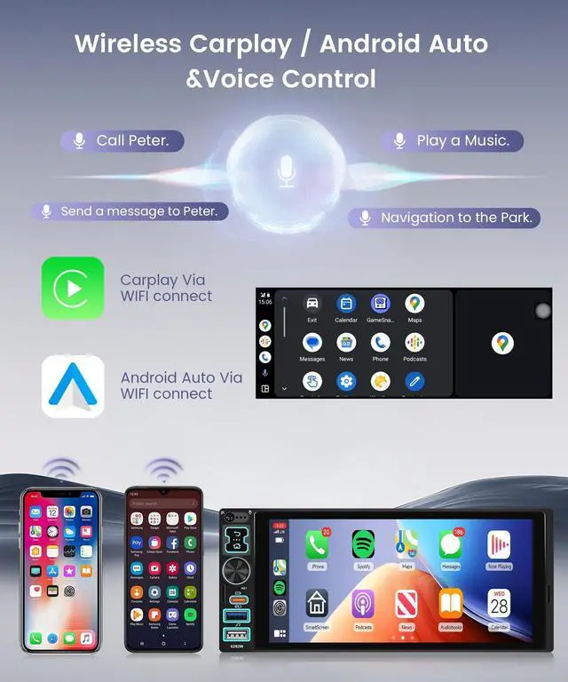Mirror Link: Enjoy seamless wireless/wired connectivity with CarPlay, Android Auto, and Mirror Link. Access your phones address book, navigation, music, videos, and notifications directly from the head unit, plus use voice control to stay focused on the roadensuring a safer, smarter driving experience ^^