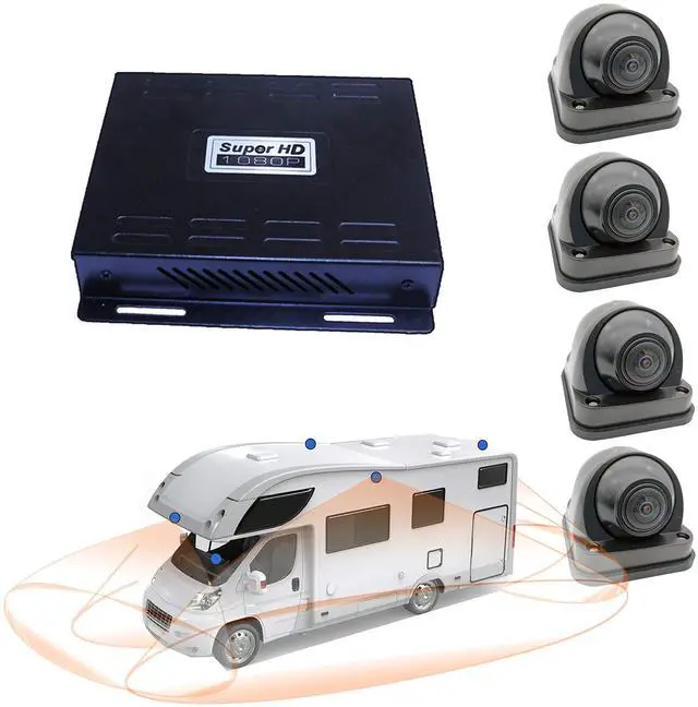 ^^ Quad-core CPU: Supports 4-CH 1080P DVR recording, MP4 format, The video saved in the USB disk, Support playback on Local, PC, TV, Mobile ect. Loop record, Support Max 64GB ( 2.0 )usb disk. the record Video resolution is 2560*1440; When the truck ACC ON, the system will auto record of 4 ch cameras ^^ 4 ultra wide cameras provide a complete view around vehicle. System stitches views together to simulate a bird's eye view of vehicle. When the vehicle start on, the system will auto record.