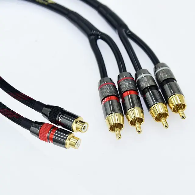 1 rca female to 2rca male, 2 cables ^^ The wire adopts 4n OFC, the plug is pure copper gold-plated 24K ^^ 2 power amplifiers can be played at the same time, can also be played separately ^^ Multiple length selection, bifurcation position in the middle of the wire ^^