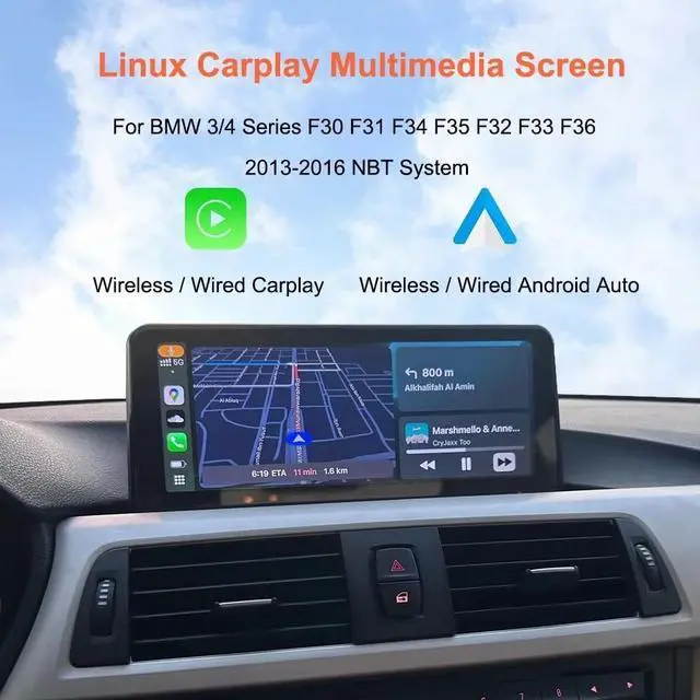 Bonroad 10.25 '' Multimedia Screen CarPlay Android Auto GPS Navigation For BMW 1/2/3/4 Series F20 F21 F23 F30 F31 F32 F33 F34 F36 with NBT SystemFor BMW 1 Series F20 F21 (2011-2016) Original NBT SystemFor BMW 2 Series F23 (2013-2016) Original NBT SystemFor BMW 3 Series F30 F31 F34 F35 (2013-2017) Original NBT SystemFor BMW 4 Series F32 F33 F36 (2013-2017)