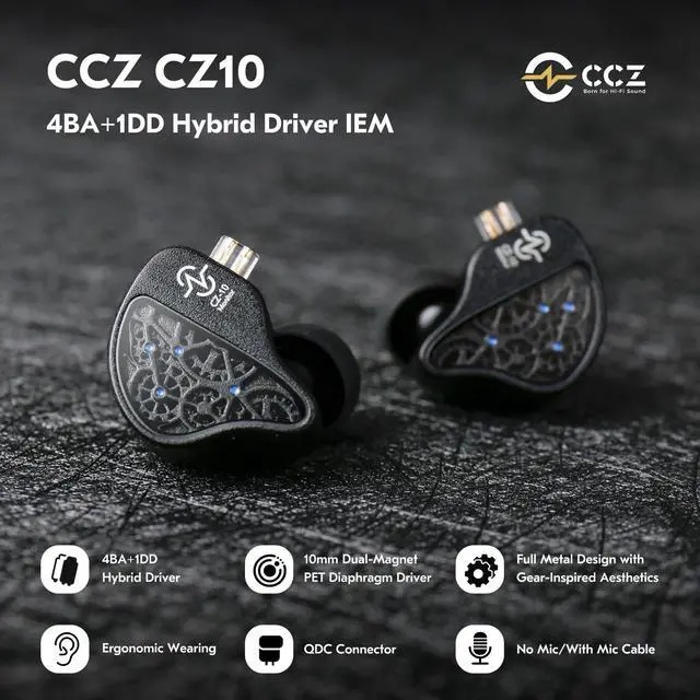 1DD+4BA Hybrid Professional Sound Quality IEMsCCZ CZ10 iem earbuds uses multi-driver setup and advanced crossover technology, delivering exceptional audio resolution, revealing even the most nuanced details in music. Instrument separation is outstandingeven in complex, large-scale orchestral compositions, each section remains distinct and layered, creating a precise and immersive soundstage. The in ear monitor headphones features powerful BASS, full and natural Midrange, crystal-clear Highs. You can use these in ear monitors when you play bass, FPS games, MOBA games, audio recording. ^^ An Excellent Companion for Gaming and Monitoring With high resolution audio and pinpoint positioning, CCZ CZ10 gaming earbuds is not just an excellent companion for music and monitoring, but also a reliable assistant for calling and gaming.