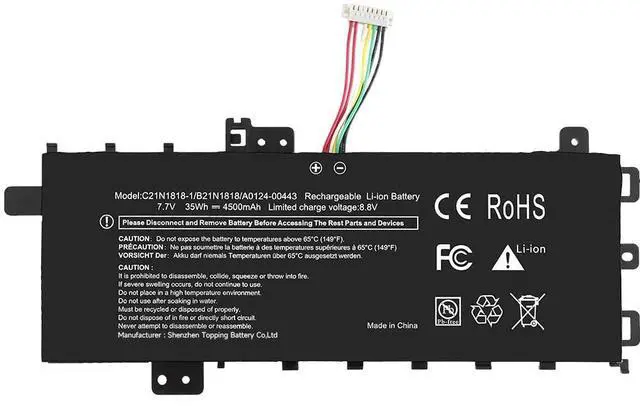 Compatible Part Number: C21N1818-1 B21N1818 A0124-00443 C21N1818 C21N1818-2 B21N1818-2 0B200-03190800 0B200-03280600 0B200-03280800 ^^ Broad Compatibility - C21N1818-1 replacement battery is fully compatible with VivoBook 15 F512 F512DA F512FA F512FB F512FJ F512FL F512JA F512JP F512UA, VivoBook 15 X512 X512DA X512DK X512FA X512FB X512FJ X512FL X512JA X512JF X512JP X512UA X512UB X512UF, VivoBook 15 R564 R564DA R564FA R564JA, VivoBook S512 S512DK S512FA S512FB S512FL S512UA, VivoBook A512 A512FA A512FB A512FL A512JA A512JP A512UA A512UF, VivoBook K512FA AS models ^^ Easy DIY Installation - Includes complimentary screwdriver and pry tool for straightforward battery replacement. Our professional support team provides step-by-step guidance if needed ^^ Durable and Safe Design - Utilizes Grade A battery cells with advanced multi-layer protection mechanisms to effectively prevent overcharging, over-discharging, short circuits, overcurrent, and overheating risks. Meets environmental standards, delivers stable and reliable performance, and ensures peace of mind ^^ 24/7 Email Support - Friendly customer service is available. We are committed to providing our customers with the highest quality service