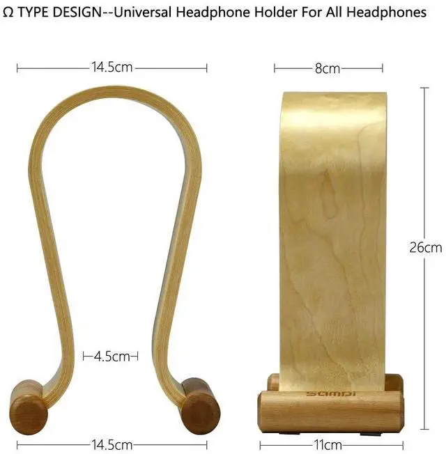 The smooth wooden surface protects the sponge of headphone head beam against the risk of scratches. ^^ Unique Appearance Design SAMDI headphone stands is researched and designed according to Omega's appearance. Elegant and practical, a good partner for gaming/music/monitoring headphones.