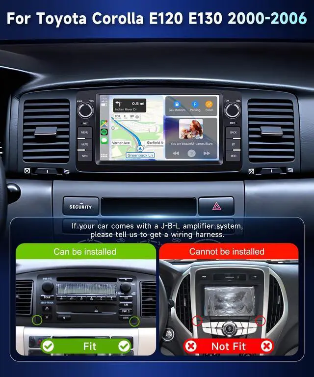 For Toyota Corolla E120 E130 Car Radio The Android Car stereo fits for Toyota Corolla E120 E130 2000 2001 2002 2003 2004 2005 2006 radio, package contains frame accessories and installation tools, plug and play. Before purshasing, please check your car models/years/shape of center console. If you have any question, please tell us via ^^ 2G+64G