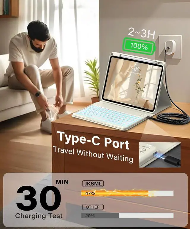 Model Number: A3266/A3267/A3270/A2902/A2903/A2904/A2588/A2589/A2591/A2316/A2324/A2325/A2072. ^^ Comfort-Typing + Easier Pen Holder25 Ergo-Hug circular keycaps wrap you in Cloud-Cushioned Press & Bounce as Cat's-paw. Side holder enables 1-tap pencil accesssmooth for long lectures or creative projects. Perfect for iPad Air 11-inch M4/M3/M2 users whose hands stay fresh and work flows better. ^^ Glow-Comfort Backlit7-color backlit with 3-step dimming (30%/60%/100%) eases eye strain. Enhanced by a dynamic breathing lightflowing gently as you type. This smart combo is ideal for iPad Air 10.9" 4th/5th Gen users working late or studying in dim light. Gentle light, happier eyes.