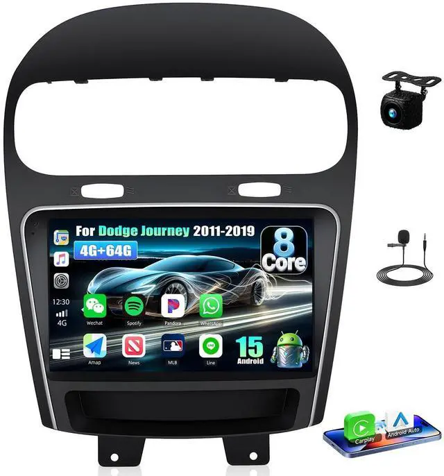Android 13 Car StereoFits for Dodge Journey 2011 2012 2013 2014 2015 2016 2017 2018 2019 and for Fiat Freemont 2012-2014. Android system Quad 8 Core and 4GB RAM + 64GB ROM ensure smooth operation and fast response. 9 inch capacitive 2.5D tempered glass touch screen, with high resolution 1280*720 IPS. Clearer picture and richer colors. ^^ Built-in Wireless Carplay & Android AutoBulit in Wireless Carplay & Wired Android Auto, support to use smart voice assistant or touch the display, you can get directions, make calls, send and receive messages, and enjoy music etc.