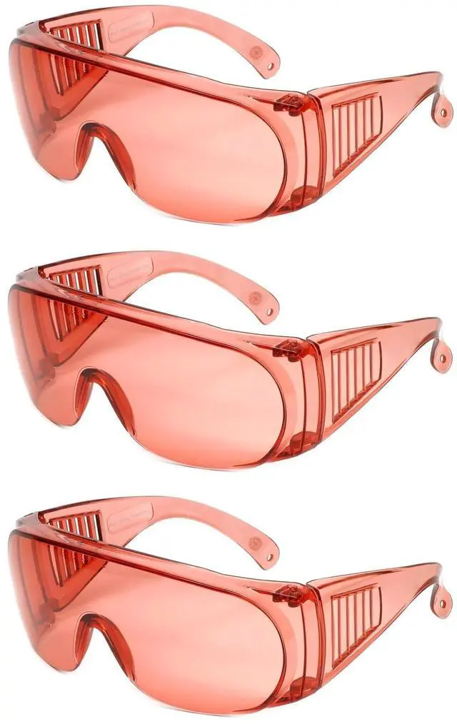 Outdoor Adaptability: These UV, fluorescent light and blue light blocking fit over glasses are versatile, suitable for both indoor and outdoor use. With the ability to function as UV eye protection safety glasses or as computer blue light blocking fit overs, they're ideal for those needing eyewear that fits over prescription glasses. Ideal for a variety of settings, from laboratories (as pink lab goggles chemistry) to everyday use (as blue light glasses for over glasses). ^^ Optimized for Light