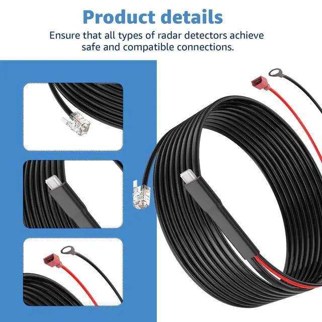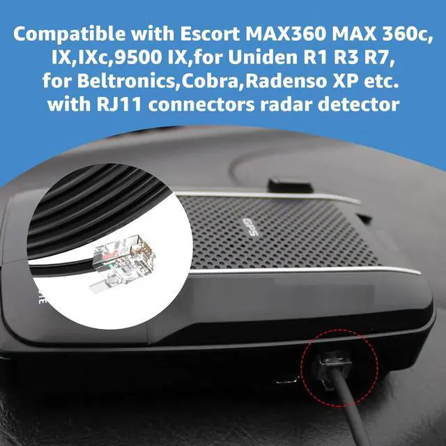 Broad Device CompatibilityFeaturing a standard RJ11 connector, this HardTap HT-1096 Hardwire Kit is designed to work with a wide array of popular radar detector brands and models. Replacement for Escort MAX360 MAX 360c, IX, IXc, 9500 IX, for Uniden R1 R3 R7, Beltronics, for Cobra, Radenso XP etc. ^^ Power Delivery SolutionThis radar detector hardwire kit Achieve a seamless, permanent power connection that completely eliminates messy cords and frees up your 12V socket for other devices ^^ Secure and Stable Electrical IntegrationEngineered with a built-in 2-amp fuse, this rj11 radar detector hardwire kit protects your radar detector from potential power surges or electrical irregularities ^^ Vehicle-Specific Sleek FinishEnjoy a factory-original appearance by hiding all wiring behind your vehicle's trim and headliner for a truly clutter-free cockpit ^^ Ample Length for Optimal PlacementThis generous 7.8 ft cable offers maximum flexibility when choosing the ideal location for your radar detector.
