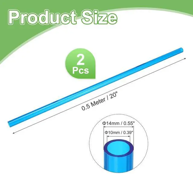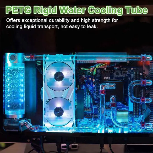 the package of: 2Pcs x Soft Computer Water Cooling TubeAre there any advantages of this product? PETG rigid water cooling tube offers exceptional durability and high strength for cooling liquid transport, not easy to leak. How to use it? This PETG hard tubing can be easily cut into any length, great components for computer water cooling DIY operation. Suitable for 14mm OD tube fittings. What should I notice? Before purchasing this product, please check the specification first and make sure you have selected the right size of tube.