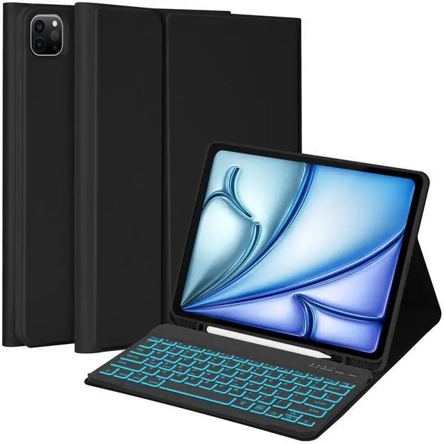 COMPATIBILITYThis iPad Air 13 inch case keyboard is compatible with the iPad Air 13-inch (M2, 2024 / M3, 2025) and the 12.9 -inch iPad Pro (5th & 6th generation, 2021-2022). Please verify your iPad model before ordering. Compatible with the following model numbers: A2378, A2379, A2461, A2462, A2436, A2437, A2764, A2766, A2898, A2899, A2900, A3269, A3271. ^^ MAGNETIC DETACHABLE KEYBOARDThis iPad Air 13 inch case with keyboard transforms your iPad into a laptop-like workstation. The keyboard features a magnetic design for a secure and comfortable typing experience; it can also be easily detached when you need a lightweight and portable tablet. This keyboard case perfectly balances convenience and versatility, easily handling both focused desktop work and efficient mobile productivity. ^^ SEVEN-COLOR BACKLIT KEYBOARDThis iPad 12.9 pro case with keyboard features a 220 mAh battery, three brightness modes, and seven backlight colors, making typing easy even in low-light environments. The iPad Keyboard Case features a row of shortcut keys for one-touch access to frequently used functions, including volume and media controls, brightness adjustment, and more. The included charging cable ensures continuous battery life while allowing you to comfortably work all day. ^^ MULTI-ANGLE VIEWINGThis iPad 13 inch case with keyboard features three notches, allowing you to tilt your iPad to three different viewing angles in landscape mode.