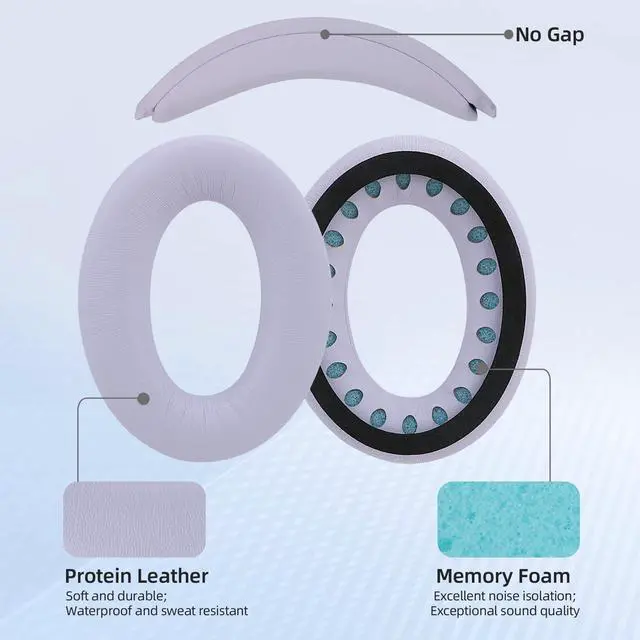 ^^ Premium Materials: Protein leather ear cushions are typically durable, resistant to wear and easy to clean. Inner memory foam provides a softer and more comfortable feel, reducing pressure and discomfort during long listening sessions.