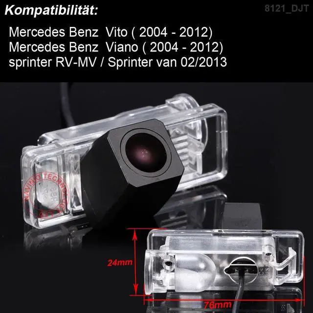 This product could fit all of the following models as expected: Replacement for Mercedes Benz Vito2004-2012; Replacement for Mercedes Benz Viano2004-2012; Replacement for Sprinter RV-MV/Sprinter Van 02/2013As the same car model in different countries may have differences, please check the camera size and compare your car installation carefully to avoid mistakes.