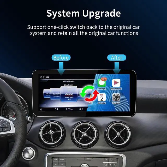 Pre-purchase NoticeThis touchscreen is a 12.3 -inch Linux car display upgrade accessory for Mercedes Benz models. Fit for Mercedes Benz CLA GLA Class C117 X117 X156 2016-2018 with NTG 5.0 Linux System. If you are not sure about your vehicle system, please consult us. If you are not sure how to install it, you can watch the instructions and installation video we provide. ^^ Built-in CarPlay and Android AutoThis product supports wireless and wired CarPlay and Android Auto, allowing you to seamlessly connect your smartphone to the car system, whether it is iOS or Android system.