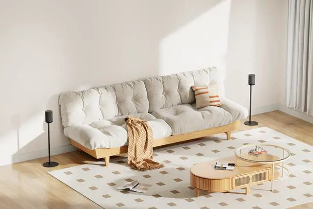 Create an IMMERSIVE AUDIO EXPERIENCE and improve your listening experience from anywhere in the room with this made for SONOS ERA 100 or ERA 300 floor stand ^^ Fixed height ERA 100 and ERA 300 floor stand from 27.6" - 50" for your optimal listening experience ^^ Cable management allow elegantly hides any cables that are attached to speaker ^^ Plastic pads included to ensure stability on solid surfaces, steel spikes for carpeted surfaces ^^ This speaker floor stand is designed and optimized specifically made for SONOS ERA 100 and ERA 300 speaker.