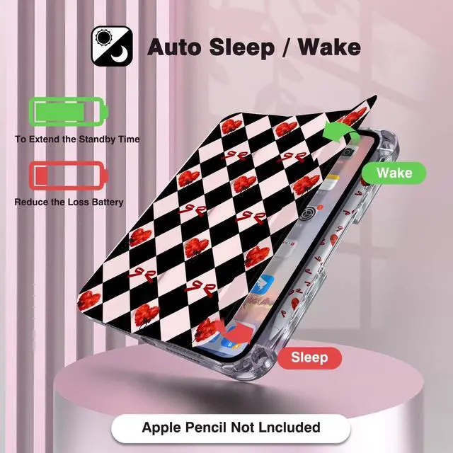 Pencil NOT included. ^^ Auto Sleep/Wake + Strong Magnetic Lock Smart & Secure Built-in magnetic strip automatically wakes/sleeps your iPad when opening/closing the lid, saving battery for all-day use. Powerful magnets ensure a tight, slip-free fit that stays put in your bag. A perfect mix of cute aesthetics and practical functionality your iPads new must-have accessory.