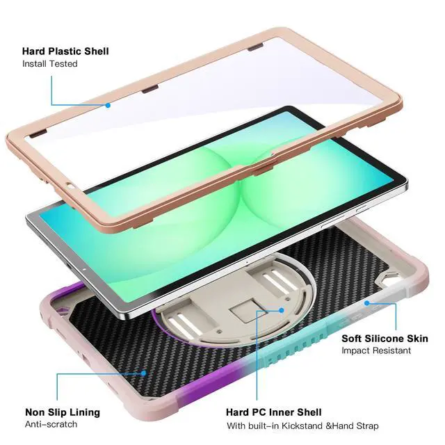 CompatibilityExclusively designed for Samsung Galaxy Tab A11+ Plus/A9+ 11-Inch 2025/2023 tablet(SM-X230/X236/X238/SM-X210/X216/X218). NOT fit for other Samsung tablet model. ^^ Rotating Stand + Hand Strap360 Rotating Kickstand provides multi-angle viewing, with soft handle strap, easier to hold and use your tablet in your outdoor travelling, working, gaming with kids. ^^ Portable Shoulder StrapThe adjustable shoulder strap provides the secureest protection and more convenience when you play or work with Samsung Tab A11+ /A9+. Hang it anywhere for your better entertainment, make your hands free. ^^ Multiple ProtectionHard PC front cover, PC back cover, TPU frame and Built-in screen protector provide the max full protection for your Samsung Tab Tab A11+ /A9+ and easy to install.