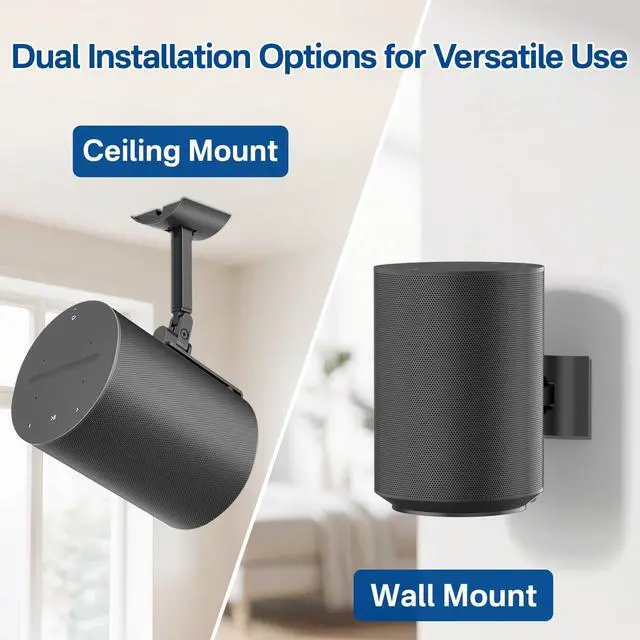 Perfect for Sonos Era 100 - Engineered for Sonos Era 100 speaker wall mount, this wall mount features dedicated bottom-fixing screws for a seamless and secure fit. It guarantees your speaker stays firmly in place during high-volume music or movie playback, without compromising its acoustic performance or sound projection. ^^ Dual Installation Options - This dual-function mount is designed for both wall and ceiling applications for Sonos Era 100 mount, offering flexible installation options. Whether you choose a wall-mounted or celling setup, its design ensures full access to all controls while adapting effortlessly to your spatial requirements.