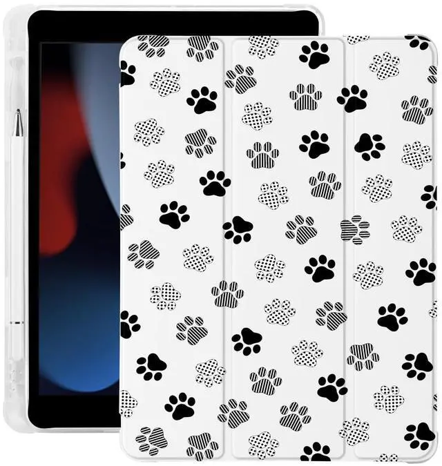 BlHMCASE Cute Kawaii Paw Print for iPad (A16) 11th Gen Case 11 Inch 2025, for iPad 10th Gen Case 10.9 Inch 2022 with Pencil Holder, Auto Sleep/Wake, White Leather Soft TPU Back Cover