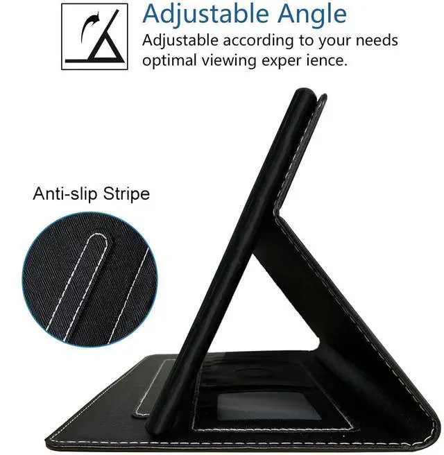 Designed with 3 delicate card slots inside for you to carry your necessary cards. There is a flexible pencil holder at the edge of the shell for keeping your stylus in place. ^^ Auto Wake/Sleep- Built-in magnetic strip, automatically wakes or puts your tablet to sleep when the lid is opened and closed. Protects and extends battery life. ^^ Stand Design- Convenient stand position for watching movie or typing, and offer a cozy angle to view and let your hands free. Easy installation and removal.