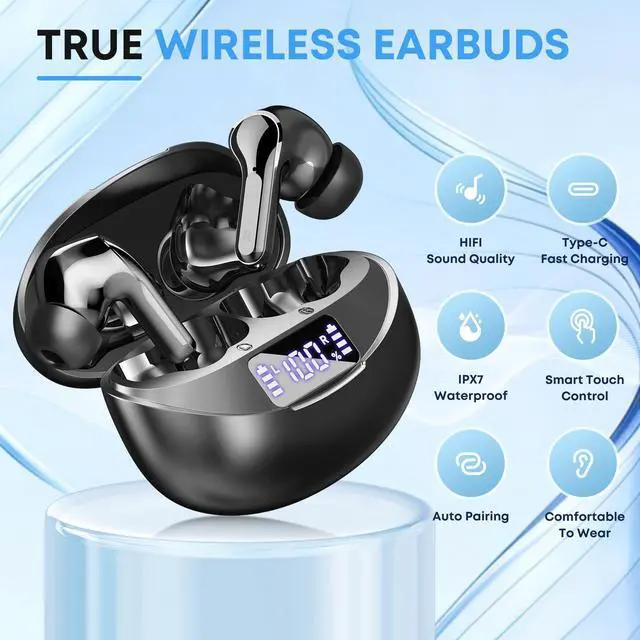 Smart touch sensors let you play/pause, skip tracks, answer calls, adjust volume, and activate voice assistants with simple taps. This seamless integration between automatic pairing and responsive controls delivers a truly smart audio experience for your daily life. ^^ LED Power Display & Extended Battery Life The smart LED digital display provides clear, real-time visibility into your precise battery status at a glance. The high-capacity charging case supports Type-C fast charging, offering multiple full recharges for the earbuds. Enjoy up to 7-8 hours of continuous playback on a single charge, and a remarkable total battery life of up to 50 hours with the charging caseeasily covering days of typical use without needing a power outlet.