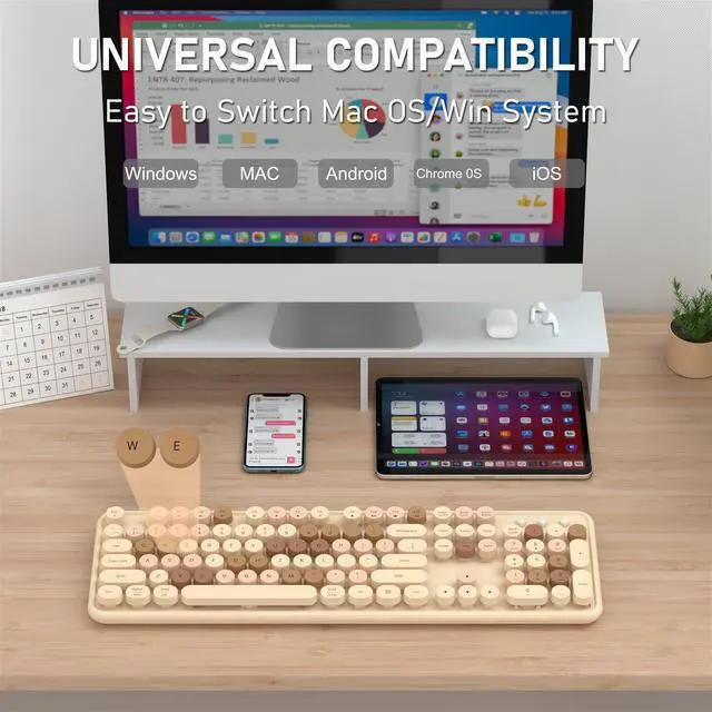 COLORFUL BLUETOOTH KEYBOARD: Typewriter retro round keycaps and clicking sounds make you enjoy typing. The 2024 new colors change the classic black impression of Bluetooth keyboards and add a different look to your desk ^^