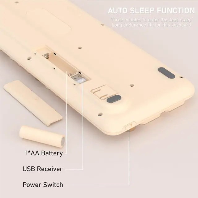 LONG TIME OPERATION: Separate ON/OFF switch and auto sleep mode design (click any key to wake up) for power saving. A Wireless Bluetooth keyboard requires a 1*AA battery (not included in the package) ^^