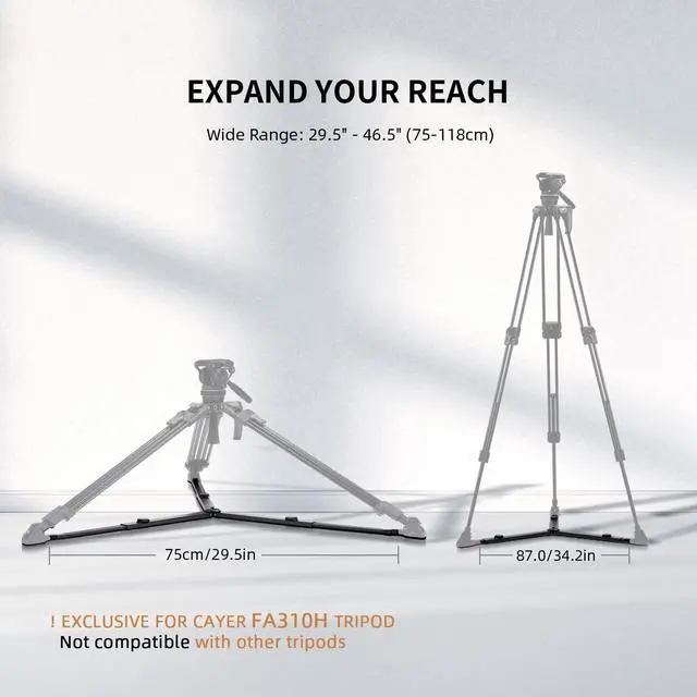 • Exclusive Gound SpreaderDesigned only for the CAYER FA310H tripod. Not compatible with other tripod models. Ensures perfect fit and stability for professional setups.