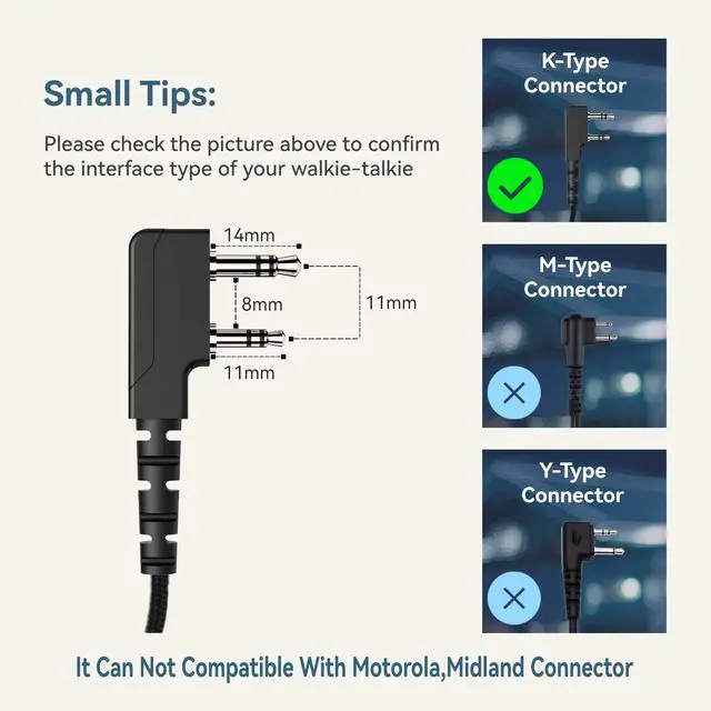 with: BaoFeng, Samcom, Kenwood, Arcshell, Retevis (RT22, RT21, H-777, RT68, RT86, FPCN10A, FPCN30A). Not compatible with Midland/Motorola (uses different pin standards) ^^ Noise-Isolating Ear Cushions for
