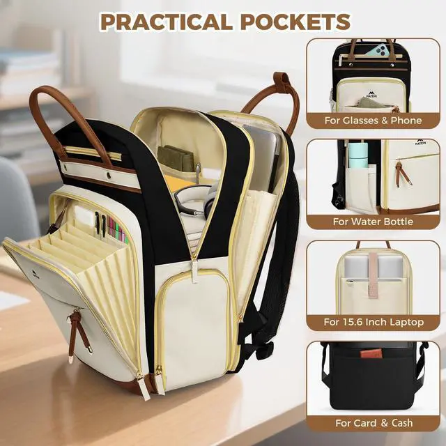 Convenient Design: Work backpack for men is equipped with dual top handles, ergonomic shoulder straps & breathable back splice ensure all-day comfort. Luggage strap on the back enhances allowing seamless attachment to your suitcase for hands-free commuting. TSA full opening design can help you access your personal item easily, and get through checkpoints quickly, ideal laptop backpack with lunch compartment for office work & day trips ^^ Must for