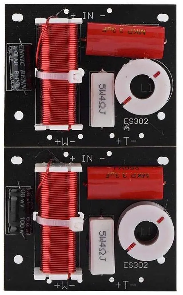 Description: This is a professional frequency divider, which is widely installed in the speaker. Playing an important role of the total frequency segmentation. Treble and bass dual frequency support, helps to transmit the treble to the tweeter unit, and divide the bass into subwoofer unit. High quality and welding.