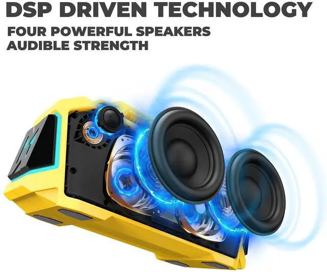 Take it to the beach, pool, shower, or hiking trail without worrying about water damage. ^^ 24+ Hours Long Playtime Built with a rechargeable battery that provides over 24 hours of continuous playtime on a single charge. Perfect for travel, camping trips, or extended listening sessions at home. ^^ Handheld & Stylish Yellow Design This powerful wireless speaker comes with a convenient carry handle for easy portability. Its bright yellow color adds a fun, vibrant touch, making it a great choice for outdoor adventures, home use, or as a gift.