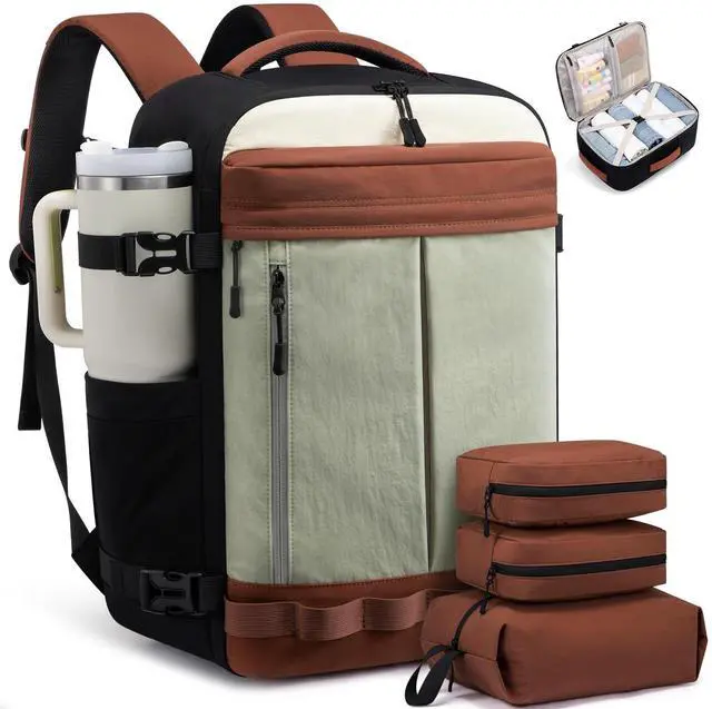 Airline Approved Carry-OnMeasuring 14818 inches, this travel backpack fits under the seat or in overhead bins. Approved by Spirit, Frontier, JetBlue, and more, its the perfect personal item travel bag for short trips, business flights, and weekend getaways. ^^ 40L Capacity One Bag, Everything PackedWith a spacious 40L design and 180 suitcase-style opening, this carry on backpack makes packing effortless. The roomy main compartment, mesh pocket, and wet section organize clothes, toiletries, and travel essentials for 35 days. ^^ 3 Packing Cubes IncludedThis travel bag comes with 2 packing pouches for toiletries and undergarments plus a separate shoe bag.