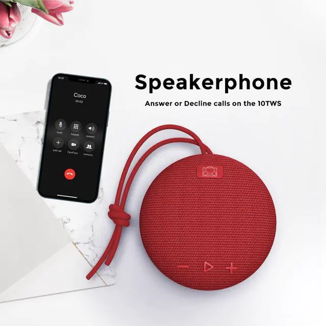 The DiamondBoxx 10TWS is an ultra-portable, ultra-rugged and waterproof Bluetooth speaker that is small in size and light-weight but with surprisingly big sound. The durable and integrated tie string allows secure attachment to your clothes, bike, scooter, belt loop or backpack, purse, gym bag, fence, tree branch, tent, just about anything making the 10TWS your companion on every adventure. The 10TWS is IPX7 waterproof and offers over 4 hours of playtime, powered by a 800mAh rechargeable Li-ion battery, allowing you to bring your music with you all day.